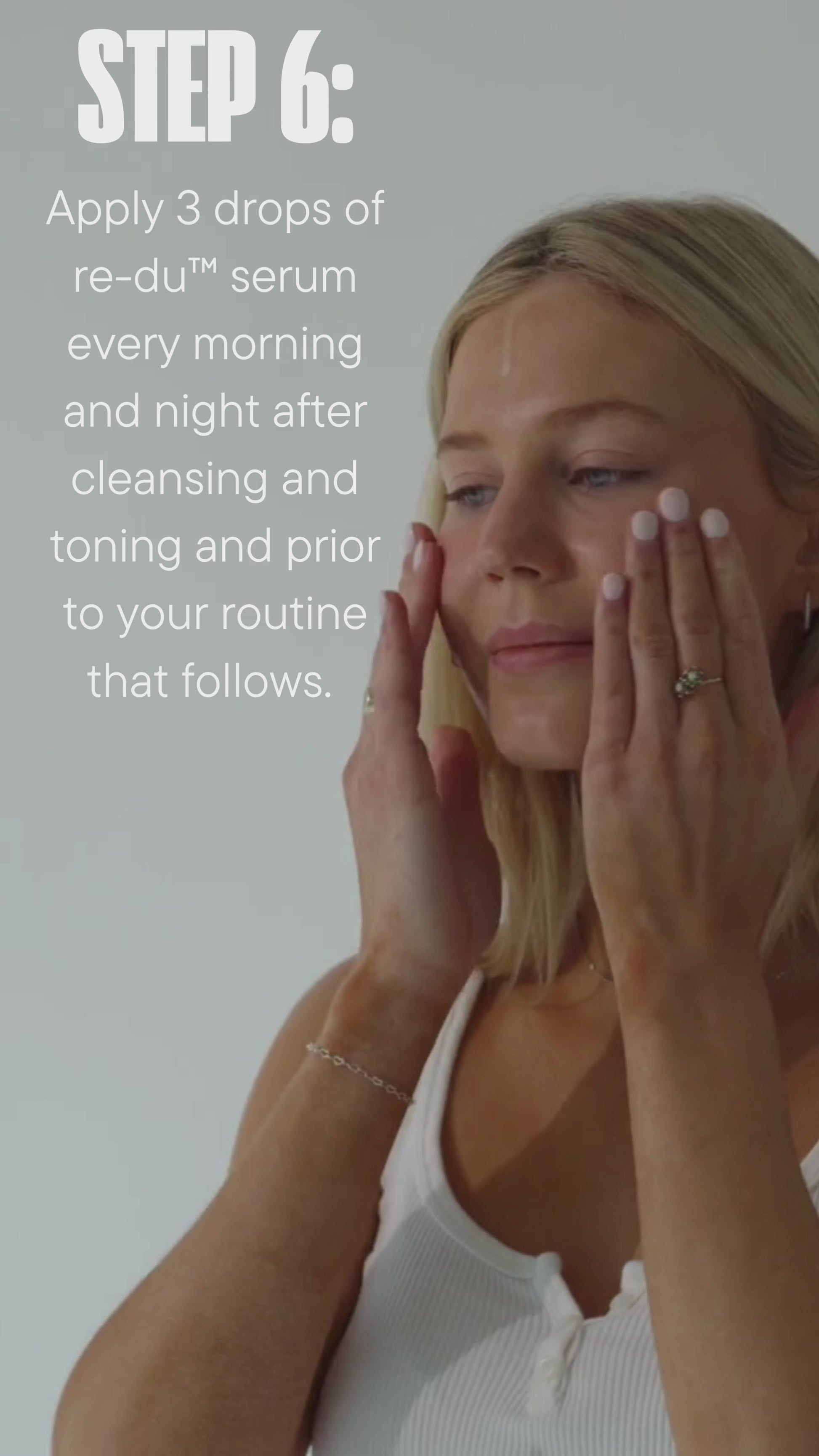 Apply re-du® serum morning and night after cleanser and toner, and before all other active skincare products.