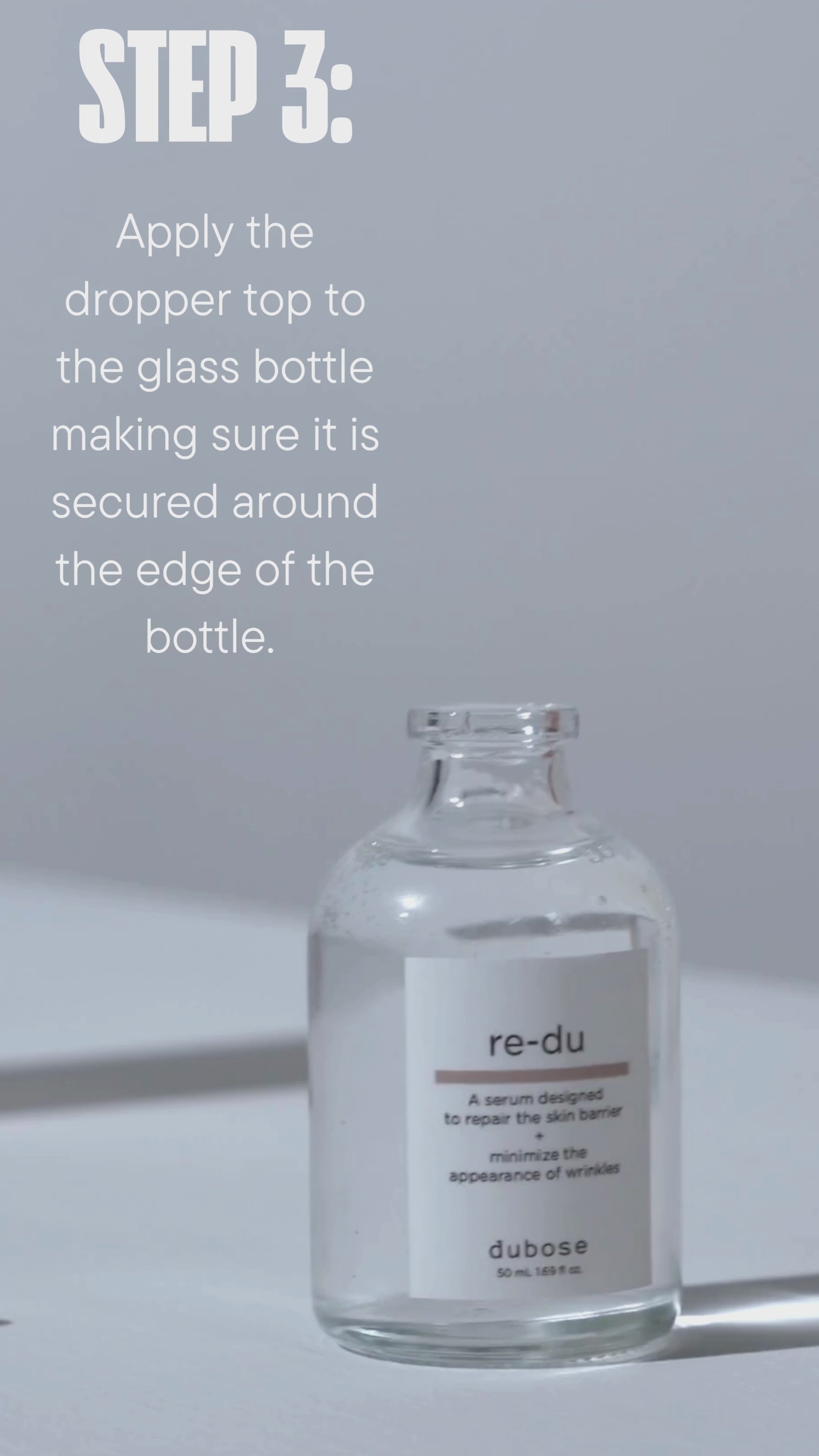 4. Apply the dropper top to the glass bottle making sure it is secured around the edge of the bottle.